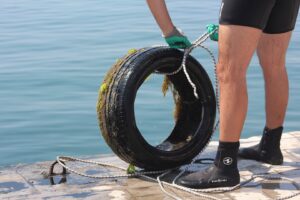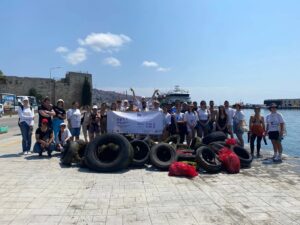 As part of our European Solidarity Corps Volunteering Teams in High Priority Areas project “SEAL – Sustainable Environment for Aquatic Life,” funded by the European Commission, we dedicated the final day of our seabed cleanup with scuba again to Hamsiyolu, a coastal area that also accumulates a significant amount of waste. We recovered numerous items from the water, including plastic bottles, tires, fishing nets, and food packaging.